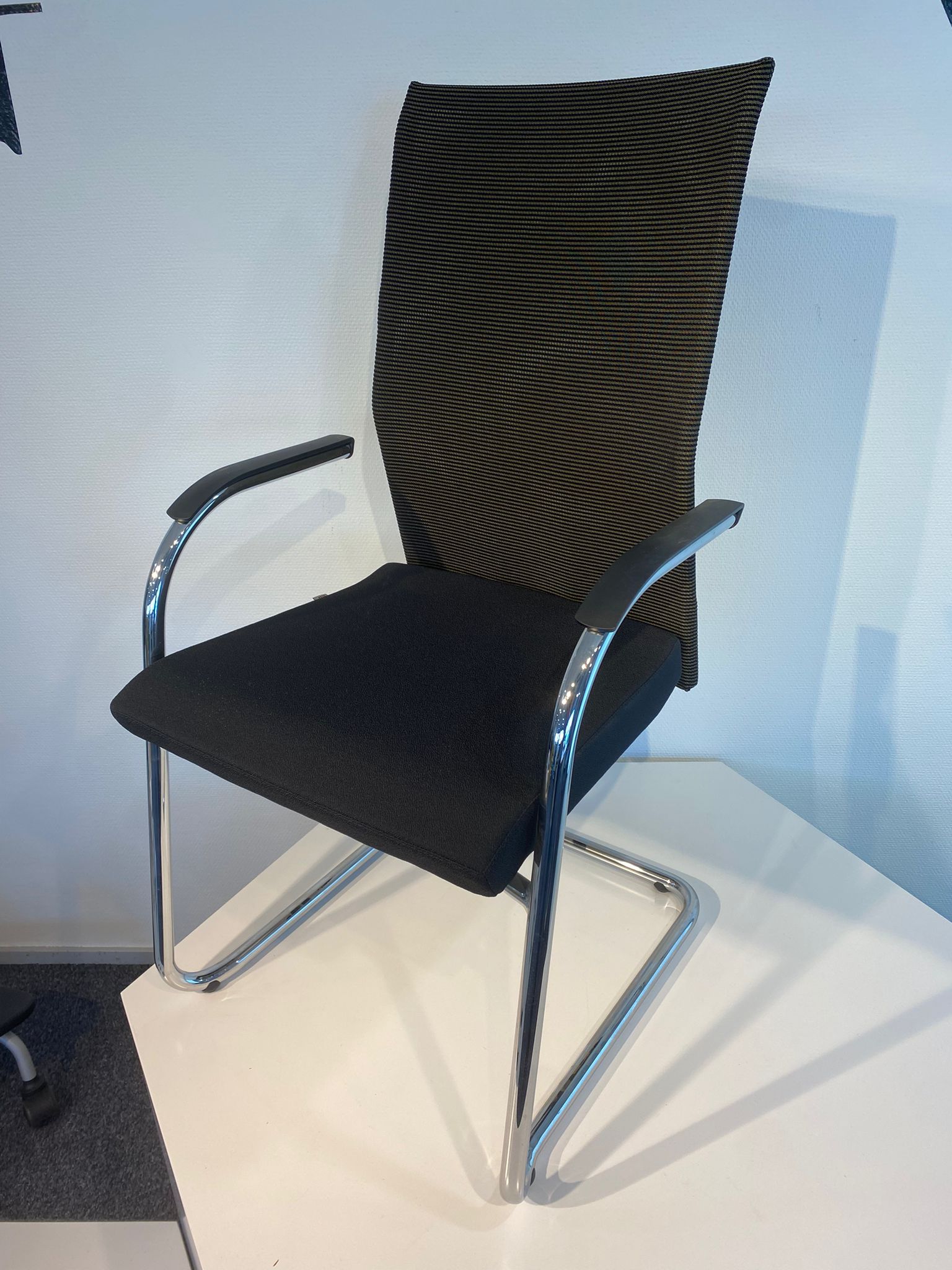 Monikäyttöinen tukeva tuoli. Istuessa kivasti hieman joustaa. Selkänoja hengittävä ”Mesh tyyppinen” (sh. 428)